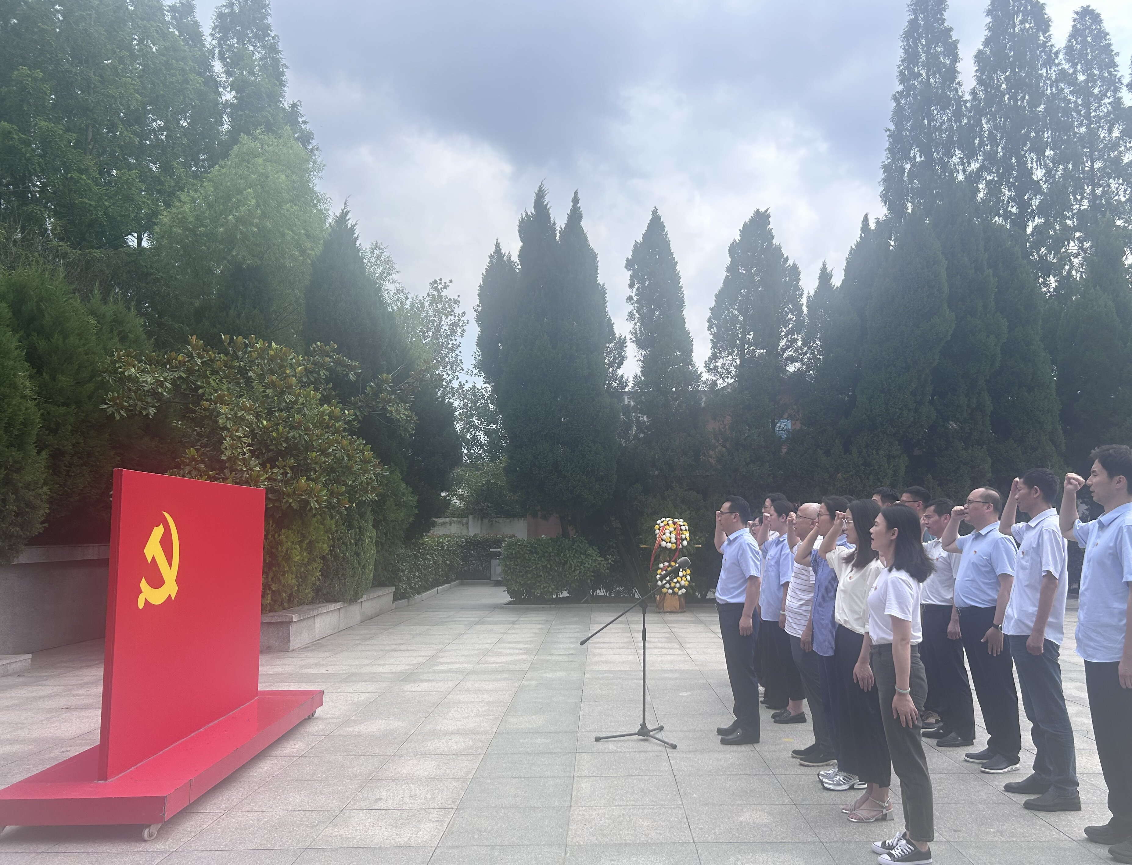 在安徽第一面黨旗紀(jì)念園內(nèi),支部全體黨員向革命烈士紀(jì)念碑敬獻(xiàn)花籃,表達(dá)對(duì)革命先烈的崇高敬意和深切緬懷。集團(tuán)黨委委員、副總經(jīng)理王奇帶領(lǐng)大家面對(duì)黨旗,重溫入黨誓詞。隨后支部黨員參觀了小甸集特支紀(jì)念館,通過一幅幅歷史照片,一件件珍貴實(shí)物和一個(gè)個(gè)感人故事,了解中共小甸集特別支部的成立過程,重溫革命前輩的英勇事跡,真切感受先烈們滿腔的愛國熱情、堅(jiān)定的革命信仰和不怕犧牲的奮斗精神。