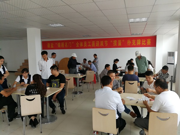 為迎接即將到來的中秋和國慶佳節(jié),同時加強(qiáng)公司各部門之間的聯(lián)系,方便日常工作的順利開展,活躍公司內(nèi)部員工工作氣氛,激發(fā)公司員工的工作熱情。9月21日,“徽鹽•錦繡名門”項目公司食堂熱鬧非凡,公司各部門員工共同參加喜迎雙節(jié)“摜蛋”撲克牌比賽。