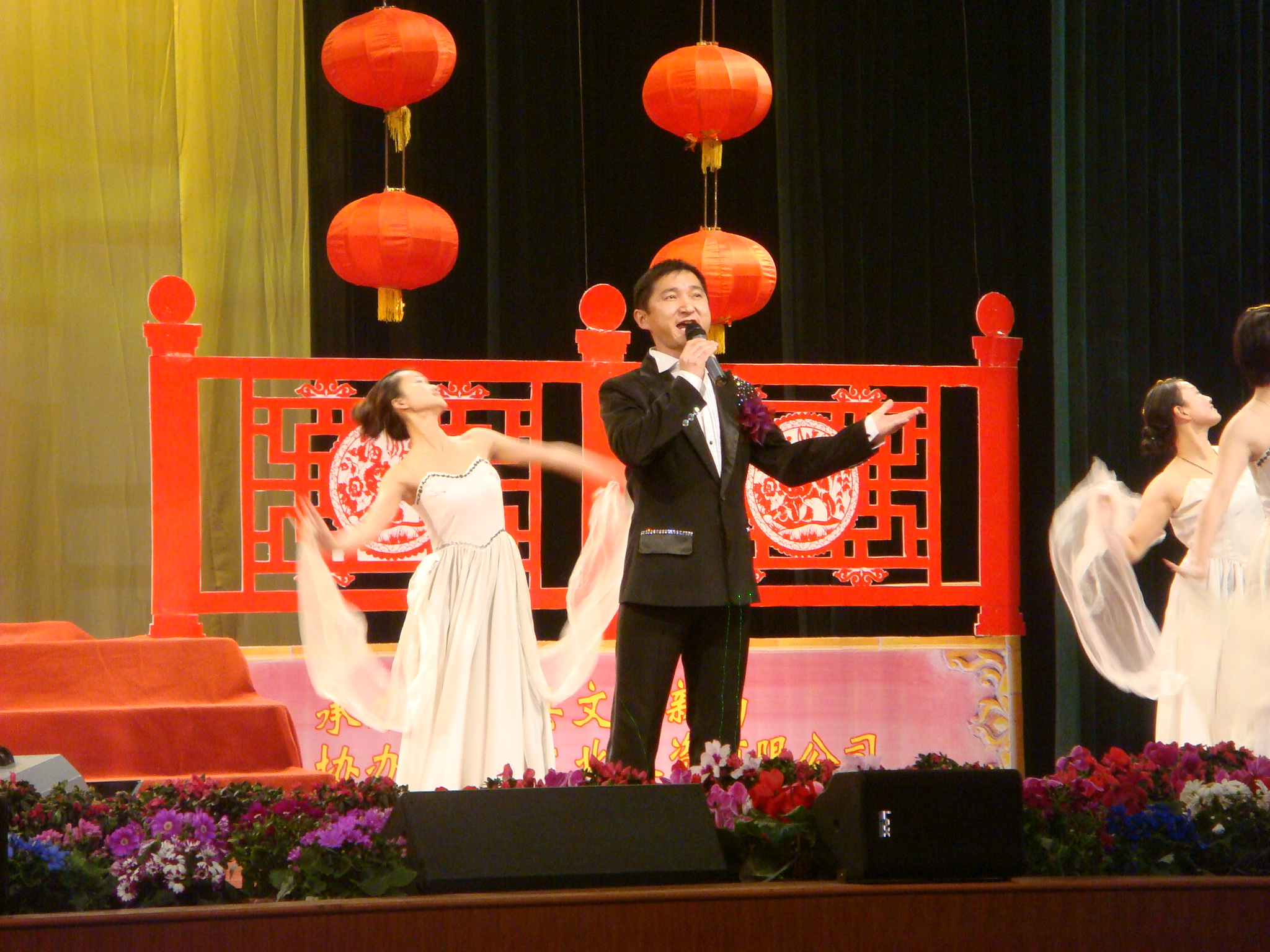 當晚是中國農歷傳統(tǒng)的小年夜,定遠大劇院內燈火通明、春意融融,來自定遠縣委、縣政府的領導以及定遠縣政商各界的嘉賓匯聚一堂,以“和諧定遠”為主題,共同歡慶新春佳節(jié)的到來。晚會現(xiàn)場氣氛熱烈,節(jié)目形式多樣,既有充滿異域風情的拉丁炫舞,又有地方特色濃郁的舞蹈《蝶戀花》,著名歌手董冬現(xiàn)場獻藝,演員們精彩的演出博得現(xiàn)場觀眾的陣陣掌聲,一次次將晚會推向了高潮。