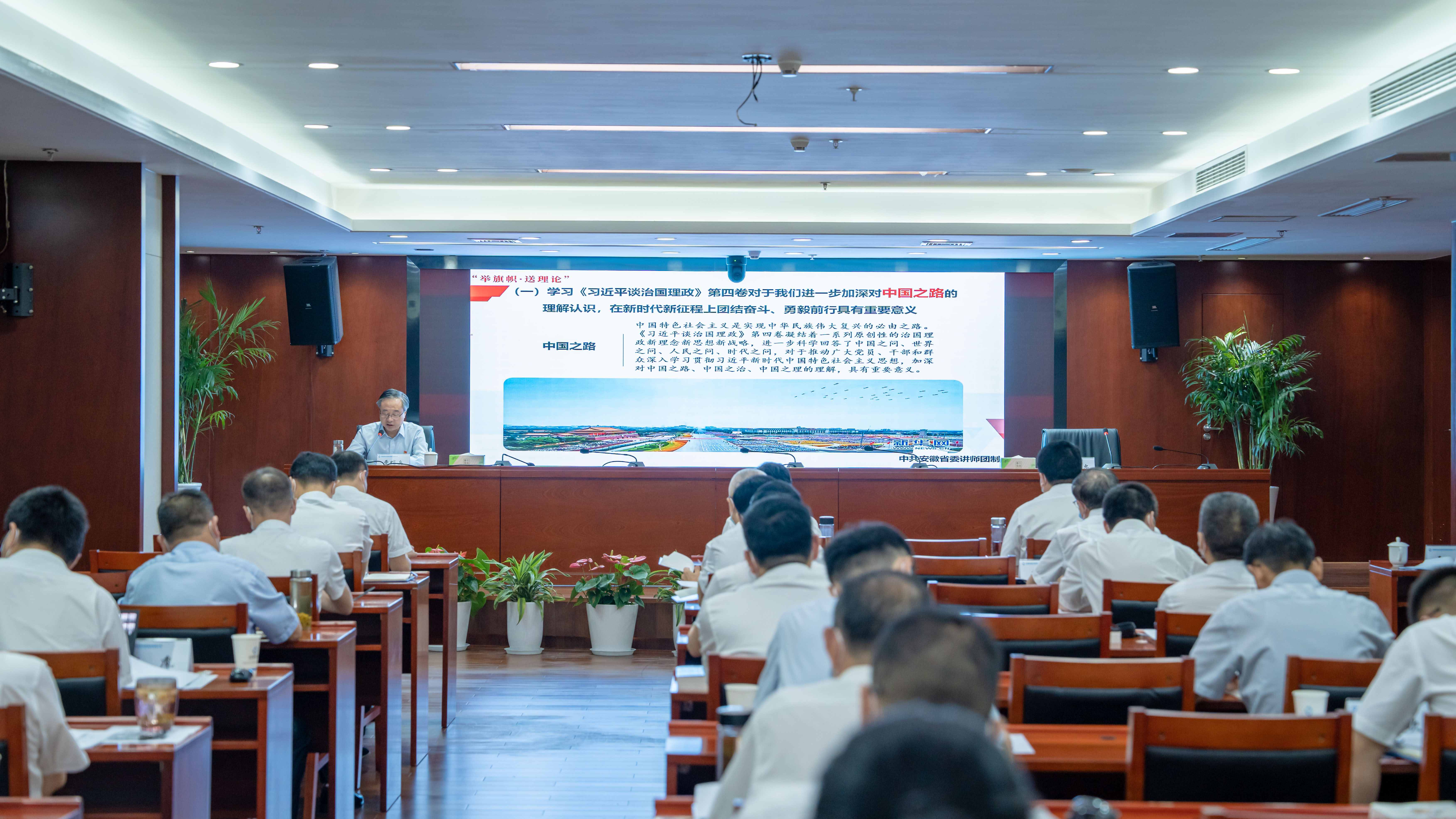 9月14日上午,全省“舉旗幟·送理論”學(xué)習(xí)貫徹習(xí)近平總書記在省部級(jí)主要領(lǐng)導(dǎo)干部專題研討班上重要講話精神、《習(xí)近平談治國(guó)理政》第四卷省級(jí)示范宣講報(bào)告會(huì)在省鹽業(yè)集團(tuán)公司舉行。省級(jí)示范宣講團(tuán)成員、省生態(tài)環(huán)境廳黨組書記、廳長(zhǎng)曹哨兵作專題宣講報(bào)告,省鹽業(yè)集團(tuán)公司黨委書記、董事長(zhǎng)羅太忠主持會(huì)議,集團(tuán)公司黨委及經(jīng)營(yíng)班子成員、各直屬單位主要負(fù)責(zé)同志和集團(tuán)本部中層以上干部參加報(bào)告會(huì)。