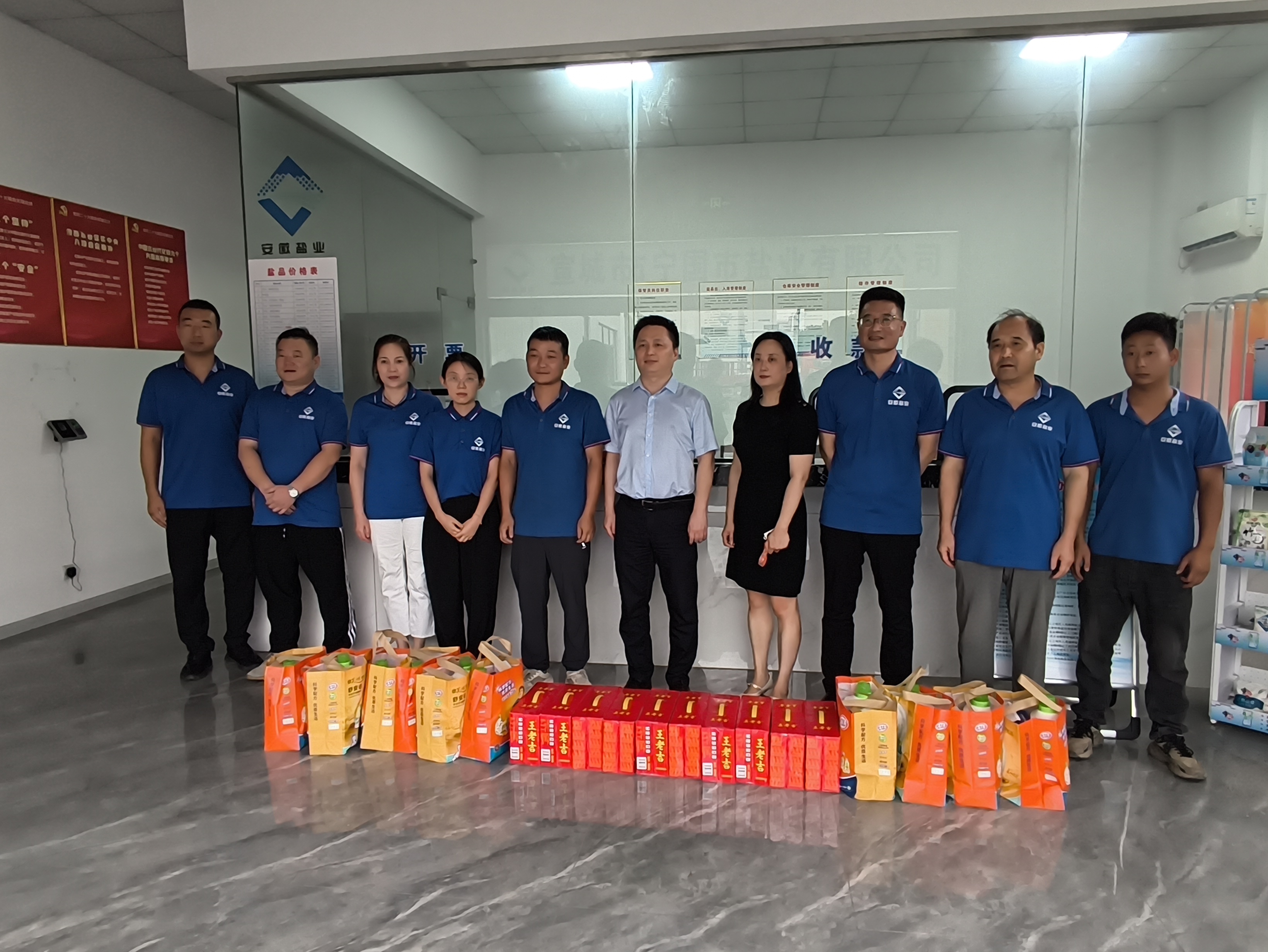 考察期間,繆磊還到寧國鹽業(yè)公司開展調(diào)研慰問,實地查看了寧國市鹽業(yè)公司儲備鹽倉庫,詳細詢問了生產(chǎn)經(jīng)營和轉(zhuǎn)型發(fā)展等方面的情況,并代表集團工會為鹽業(yè)公司一線員工送上防暑降溫清涼包,叮囑大家要做好安全生產(chǎn)和防暑降溫工作。