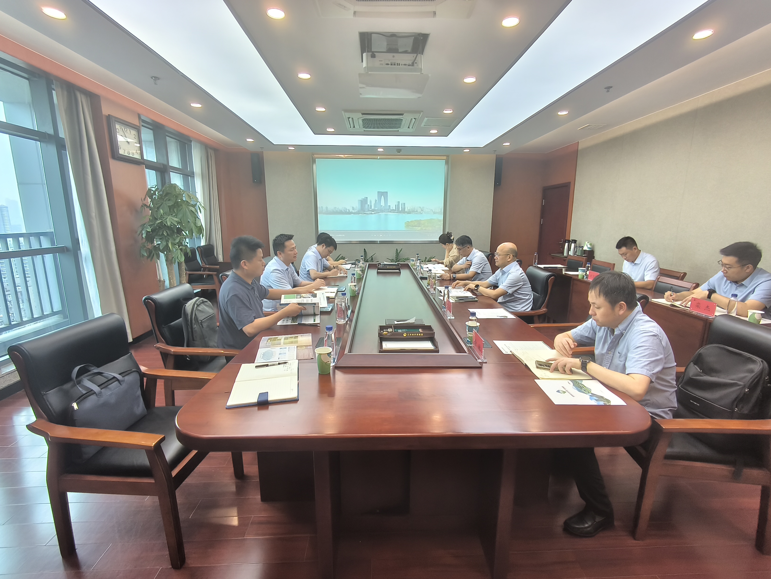 在江蘇省環(huán)保集團,繆磊與江蘇省環(huán)保集團黨委委員、副總經(jīng)理陸繼根舉行工作會談,雙方重點圍繞業(yè)務(wù)板塊布局、市場開發(fā)、科技創(chuàng)新、市縣合資合作以及省直廳局有關(guān)支持政策等方面進行了深入交流??娎谥赋?,安徽省生態(tài)環(huán)境集團在努力承接好安徽省生態(tài)文明建設(shè)重大戰(zhàn)略、重大工程、重點任務(wù)的同時,全力服務(wù)和融入長三角一體化發(fā)展大局,全面加強與長三角省級環(huán)保集團的交流和合作,江蘇省環(huán)保集團成立以來采取了許多創(chuàng)新舉措、承接了一批重點任務(wù)和重大工程,值得學(xué)習(xí)和借鑒,希望雙方能夠進一步建立合作對接機制,攜手共建綠色美麗長三角。陸繼根對繆磊一行的到訪表示歡迎,詳細介紹了江蘇省環(huán)保集團的發(fā)展歷程、職能定位、板塊布局、科技創(chuàng)新及業(yè)務(wù)開展情況,希望雙方進一步加強了解、互通有無,尋求合作切入點,加快推動合作,實現(xiàn)互利共贏。
