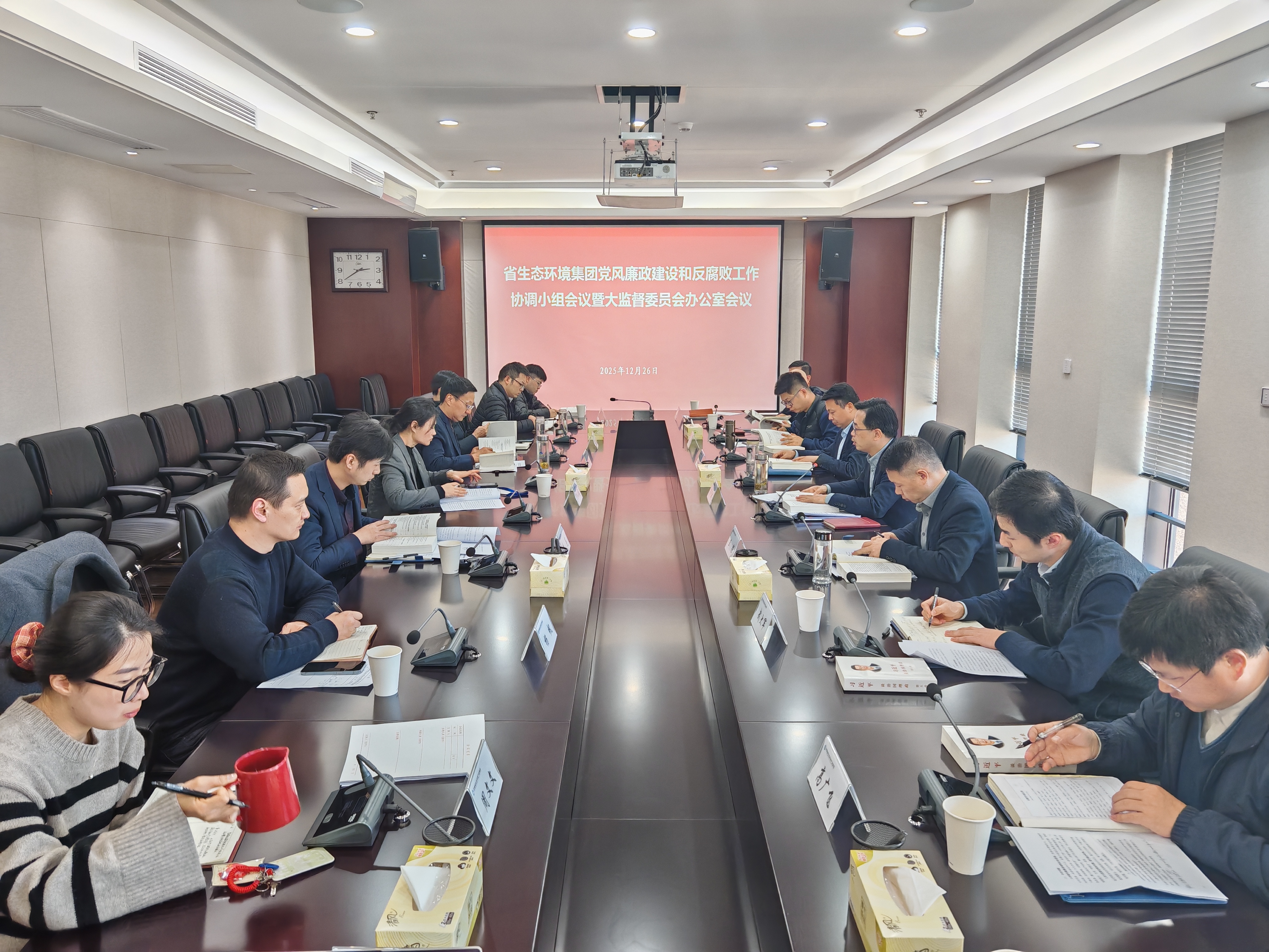 12月26日下午,省生態(tài)環(huán)境集團召開黨風廉政建設和反腐敗工作協(xié)調小組會議暨大監(jiān)督委員會辦公室會議。集團黨委委員、紀委書記羅守斌主持會議并講話。各協(xié)調小組成員單位負責人、紀委兩室一組人員參加會議。