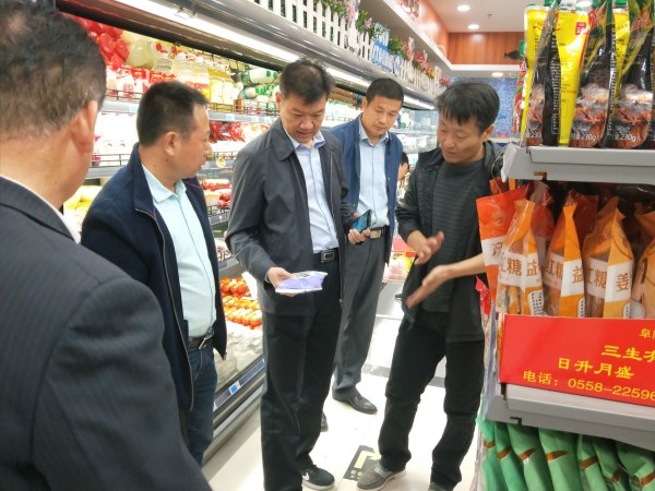 邱軍一行每到一處,首先深入市場,到各大小商超、批發(fā)部查看鹽品上架、陳列、儲存情況,隨后了解各公司的食鹽儲備、經(jīng)營情況以及人員結構情況。