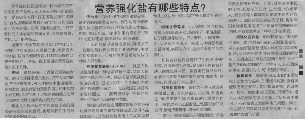 《市場星報(bào)》:營養(yǎng)強(qiáng)化鹽有哪些特點(diǎn)