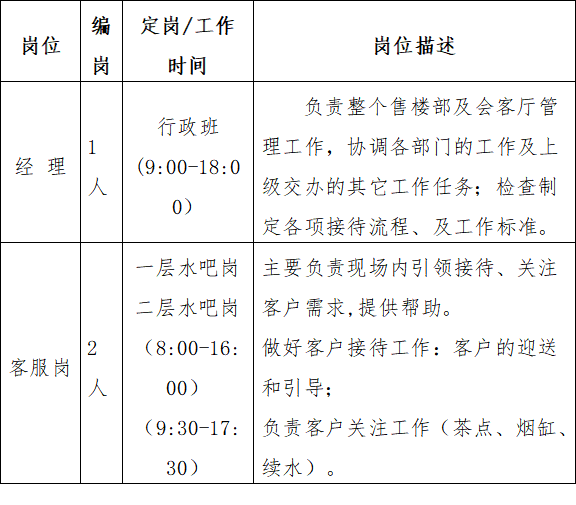 2、會客廳服務(wù)人員各崗位設(shè)置及職責(zé)分述