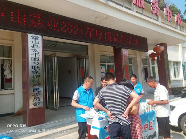 9月27日,霍山縣鹽業(yè)公司利用到太平畈鄉(xiāng)耿家坊村扶貧之際,結(jié)合鹽業(yè)發(fā)展公司《旺季市場營銷宣傳工作方案》“四進(jìn)一參”相關(guān)要求,開展了“質(zhì)量月”主題宣傳活動。