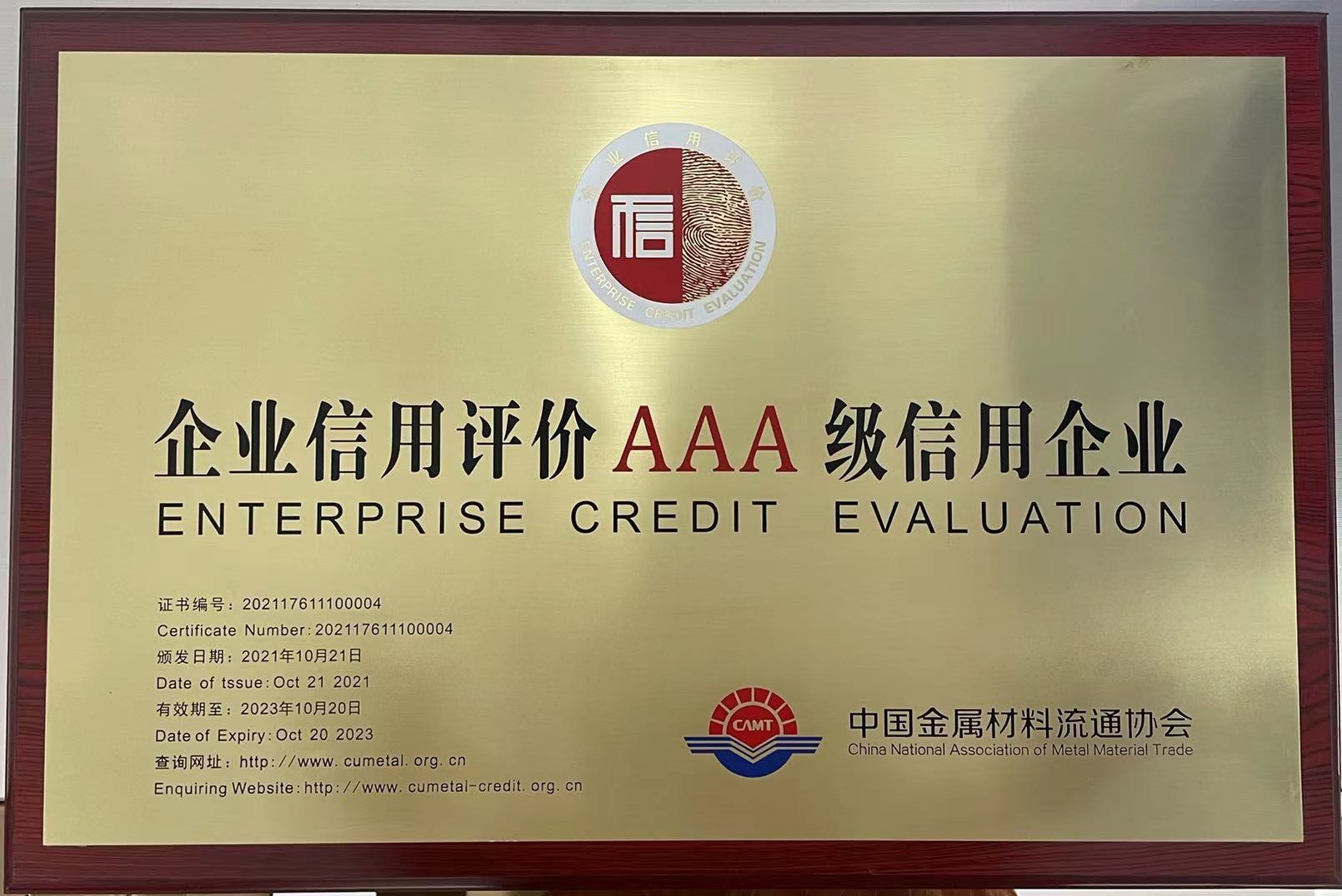 大會權威發(fā)布了2021年度中國金屬材料行業(yè)AAA級信用企業(yè)名單,安徽順朝公司成功入選,并在會上接受了由主辦方頒發(fā)的企業(yè)信用評級AAA級信用企業(yè)授牌。據(jù)悉,2021年度中國金屬材料行業(yè)AAA級信用企業(yè)全國僅有10家,安徽順朝公司是安徽省唯一入選企業(yè)。