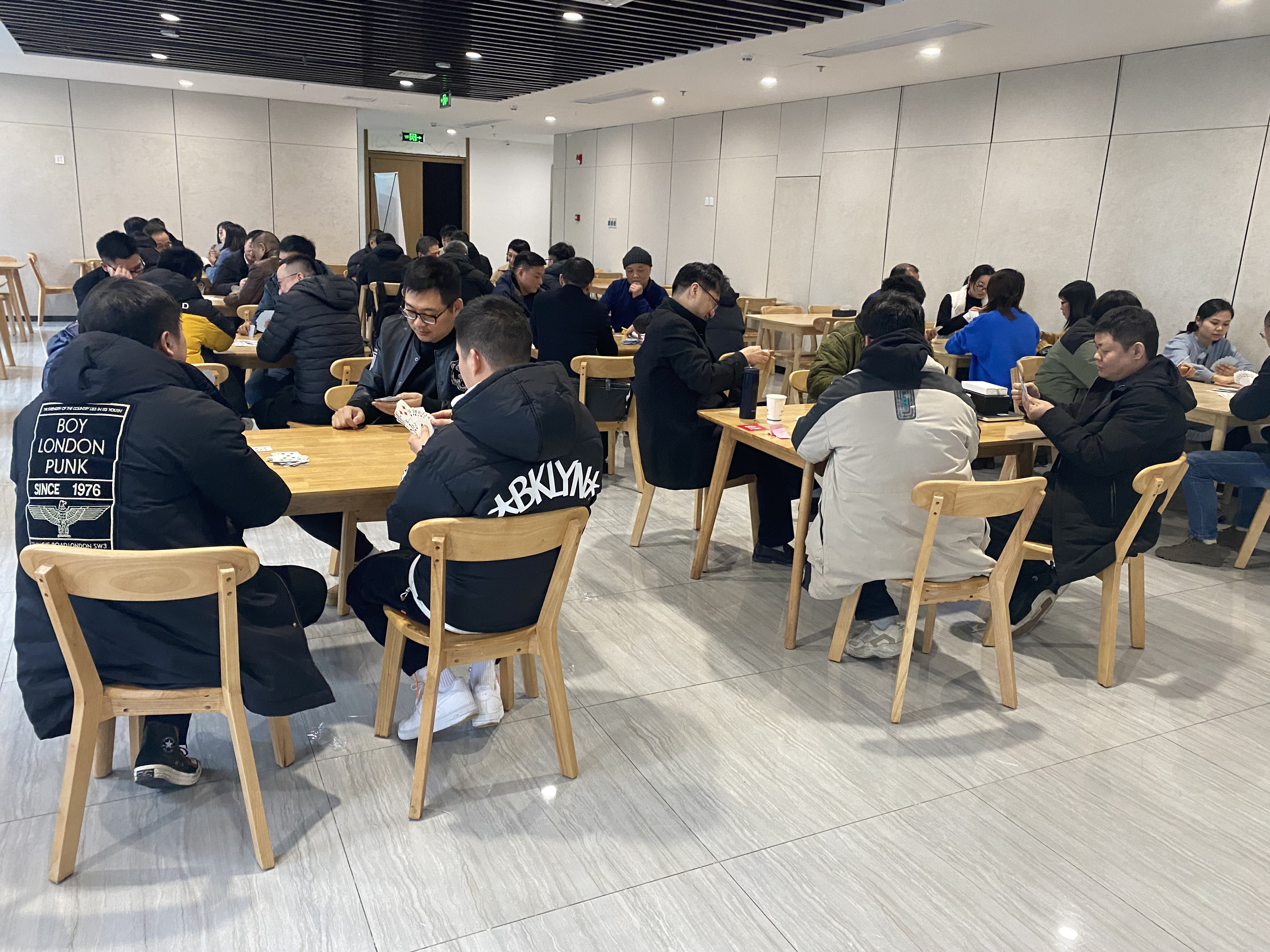 比賽共分三輪,每輪開始前進行抽簽,抽到桌號相同的則為一組,勝者進入下一輪比賽。參賽職工本著“友誼第一、比賽第二”的競賽精神,通過比賽增進友誼、相互交流。比賽中,各位選手密切配合、沉著應戰(zhàn),對陣雙方炫牌技、比智慧、賽成績、促友誼,現(xiàn)場其樂融融。經(jīng)過三輪激烈的角逐,最終決出一等獎三名、二等獎三名、三等獎五名。