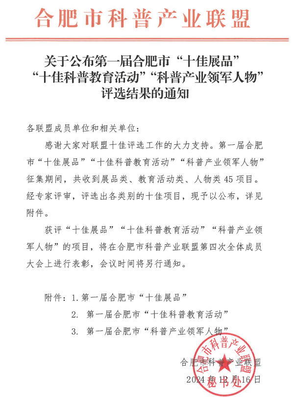 “鹽”學(xué)之旅科普志愿服務(wù)活動(dòng),還榮獲過(guò)“2024年度長(zhǎng)三角優(yōu)秀科技志愿服務(wù)品牌活動(dòng)”“2024年合肥市志愿服務(wù)大賽銀獎(jiǎng)”等殊榮,并獲得中共合肥市委社會(huì)工作部5000元的項(xiàng)目資金支持。